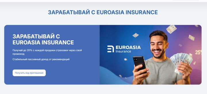 Расчёт полиса занимает около 30 секунд в мобильнои приложении Euroasia Insurance. Получение промокода — около 5 минут.