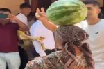 Арбуз вместо короны: Узбекистанка устроила танец с арбузом на голове
