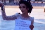 В социальных сетях распространилось видео, на котором можно увидеть, как девушка в Самарканде прошлась по площади Регистан с табличкой в руках. На