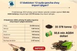 В Агентстве статистики опубликовали данные по импорту чая в Узбекистан. Сообщается, что за 12 месяцев прошлого года в Узбекистан было ввезено 33 378