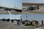 В Джизаке грузовик врезался в бетонный барьер и загорелся
