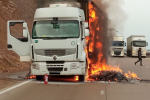 На перевале Камчик загорелся грузовик — видео