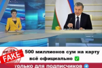 В социальных сетях мошенники обещают выплаты гражданам Узбекистана, в размере 500 млн сум