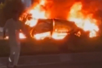 В Ташкенте перевернулся и загорелся Cobalt — видео