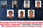 В пресс-службе УВД Андижанской области опубликован видеоролик с гражданами, которые находятся в розыске. Разыскиваются: 1. Абдуллажонов Асилбек