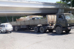 В Ташкенте грузовик с контейнером застрял под пролетом моста