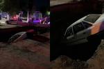 Автомобиль упал в строительную яму в Ташкенте