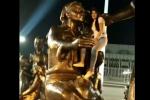 В сети появилось видео девушки, которая залезла на памятник семье Шамахмудовых для селфи