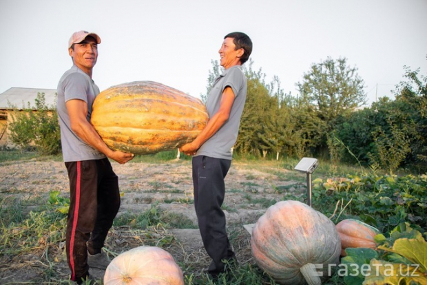 По словам Маматова, он выращивает тыквы на своем приусадебном участке в Дустликском районае в селе Мевазор. Мужчина начал выращивать подобные тыквы в прошлом году.