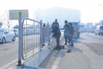 На одной из улиц Намангана устанавливают металлические разделители дороги для безопасности пешеходов