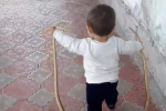 «Заклинатель змей»: Житель Узбекистана показал, как его маленький сын играет со змеями — видео