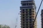 В социальных сетях распространилось видео, на котором с новостройки сбрасывают смесь похожую на песок или бетон. Видео распространилось в