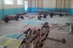 В Шахрисабзе школьники занимаются на прогнившем полу спортзала