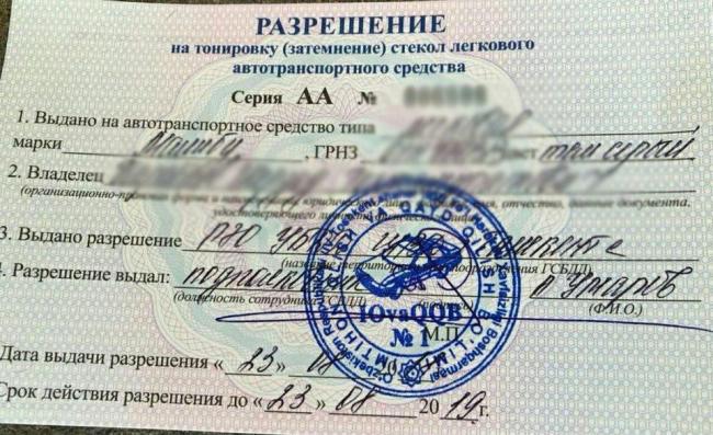 В сети распространилось фото одного из первых разрешений на тонировку стекол автомобиля. По имеющимся данным, первым владельцем разрешения стал