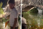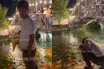 В Ташкентском парке молодой человек вытащил рыбу из канала и устроил скандал — видео