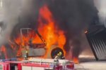 На одном из складов Алмазарского района полностью сгорел «кальмар»